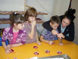 Licitare smo izradili u radionici Licitar, gospođa Ljerka Turkalj nam je izvezla i napisala tekst na Brailleovom pismu, a profesorica Pavica sve to s puno ljubavi sjedinila u platnenu slikovnicu.
